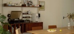 1月前发布在住宅为应对原有客餐厅开间局促与储物功能不足的局限,突破传统思维,采用去客厅化的设计策略。摒弃常规的电视背景墙结构,将整面墙体转化为融合书籍收纳与艺术陈列的复合载体。