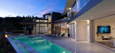 好莱坞Nakahouse豪华别墅,棱角分明,黑色和白色的设计特点,其水平梯田的庭院和私人阳台,提供上述山丘和下面的山谷一览无余。