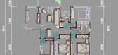 △问题二:房间的中心位置尺寸比例比较适合做客厅区域,但又限于内部采光无法满足客厅空间的采光,电视墙及沙发的位置又太远。