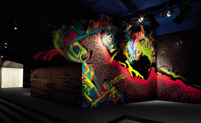 在众多欧洲奢侈品品牌中,Prada看上去总像是硬挤进来充老大的。但这些年来,掌门人Miuccia Prada坚持不懈走自己路的努力也确实为PRADA开启了一番天地,占据了一席地盘。 谁都知道出身名门的Miuccia Prada爱艺术,爱建筑,看音乐,爱设计,爱跨界合作……可到底爱到什么程度?在去年下半年的米兰时装周上,又直白地告诉了我们一次:姐就是要把艺术玩到底。 这次,她又玩得很大,除了继续和顶尖建筑师事务所AMO;以及纽约的平面设计公司2X4的合作,更轰轰隆隆地请来来自世界各地的6位当代艺术家,包括壁画家:Miles 'El Mac' Gregor, Gabriel Specter, Mesa,Stinkfish和插画家Jeanne Detallante and Pierre Mornet。 Miuccia用他们的作品作为秀场的背景墙,映衬自己的2014春夏系列服装。 而墙上的所有作品均是画家原作,而非数码喷绘,让观者隐隐嗅到意大利旧贵族残存的气魄和奢侈。这些绘画元素也出现在了Prada 2014春夏系列的衣装上。