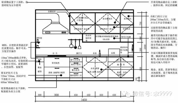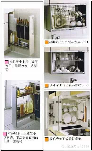 厨房储藏空间的各组成部分的尺寸应根据人体尺度、活动范围及相关的设备的尺寸要求来确定