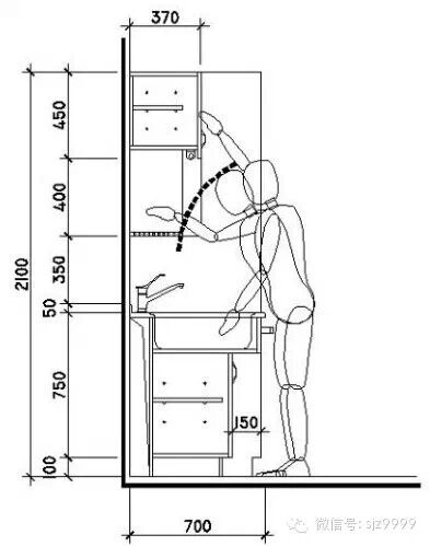 根据人体动作行为和使用舒适性及方便性,把柜体高度划分三个区域