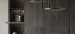 打破原有格局,释放紧邻入户的卧室卫生间,以空间置换手法拓展玄关尺度。极简天然木皮定制柜体以模块化设计纵向延伸,结合镂空几何与悬浮造型,在满足高效收纳的同时,赋予视觉层次韵律。深色木纹的温润 ...