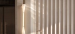 晨间的阳光自百叶帘的缝隙轻洒,映照于带有东方禅意的木作柜上。柜下原石保留自然风化纹 ...