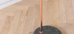 A marble base for stability, a bent copper pipe for scale and rice paper lampshade make up this simple design. Inspired by the straightforward mid-century aesthetic and manufactured by GAU lighting ...