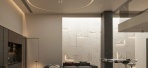 客餐厅区域延续法式线条语言,浅色护墙板勾勒出秩序之美。西厨中岛选用古驰黑大理石,搭配通透玻璃吊 ...