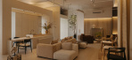 1年前发布在住宅公寓内部设有简约、不显眼的区域,适合聚会和交谈。用餐区包括一个与墙壁无缝集成的定制展示架,营造出和谐的布局和氛围。