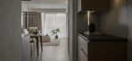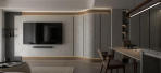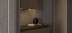 玄关以异材质地坪转换,铺陈入室的序曲。弧线转角的柜体结合座椅与镜面,柔和了空间,也映照归家的静谧氛围。隐藏灯带沿着弧度绽放微光,将 ...