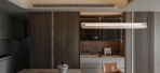 全室藉由涂料的雾面肌理、木质的温润纹理、暖黄光的柔和照明,辅以现代感金属与石材的冷暖对映,透过百叶调控日光流动,使侘寂质地於时光中缓缓显影。