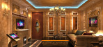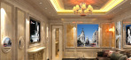 欧式包厢墙面采用金丝米黄色调的有氧石材装饰,搭配定制画背景墙;定制实木壁炉、采用同色调的装饰线条打造的矩形装饰框,水晶吊灯,集成吊顶都让润亚时代整体有一种豪华、大气的视觉冲击力。 ...