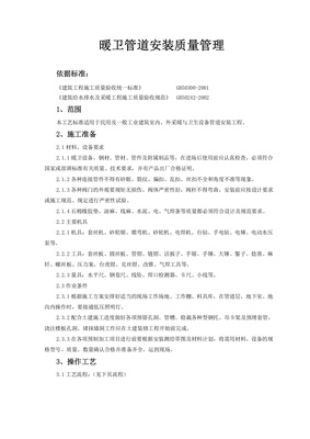 本工艺标准适用于民用及一般工业建筑室内、外采暖与卫生设备管道安装工程。