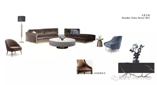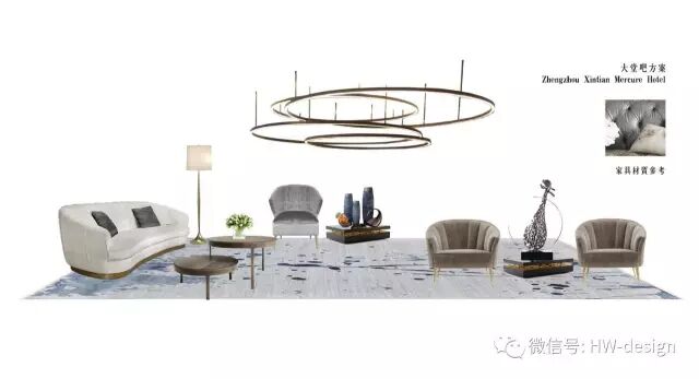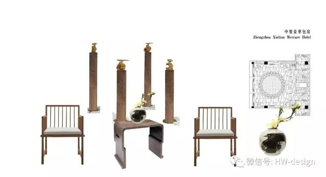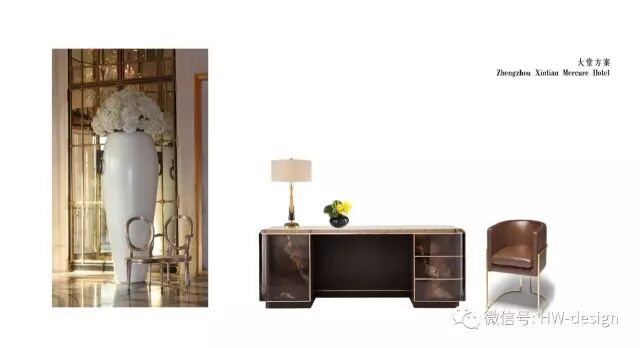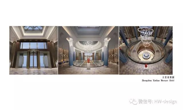 本案以地域文化為切入點,在硬裝風格的基礎上,融合自然元素,加以甲骨文、青銅鼎、黃河、鈞瓷、月季等當地特色文化的穿插點綴,盡顯中原文化的博大精深。傢俱選型簡潔,在大堂、宴會廳等空間加以法式元素以凸顯中西結合的獨特韻味,意在打造一個具有文化底蘊、低調奢華的酒店空間。