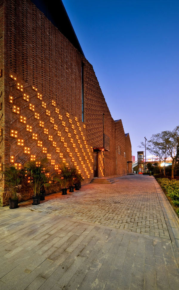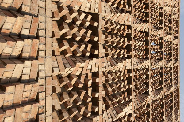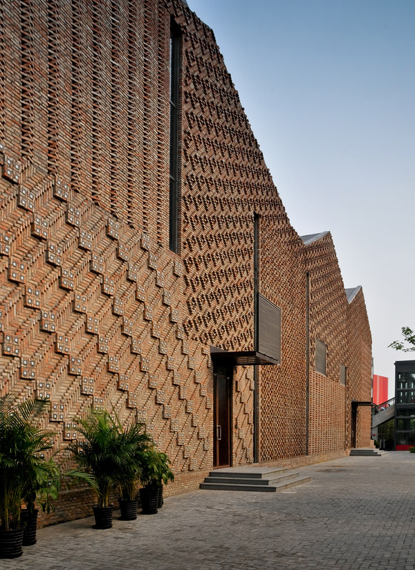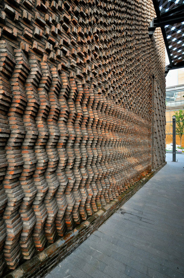 HMA建筑事务所与同济建筑设计合作,原本是上世纪的七十年代的一座工厂,设计意在尽可能地采用原有建筑结构和材料,移除一半废料。经对原有建筑的考察后拆除了原有墙体,之后将回收的砖以一定的图案堆叠起来。