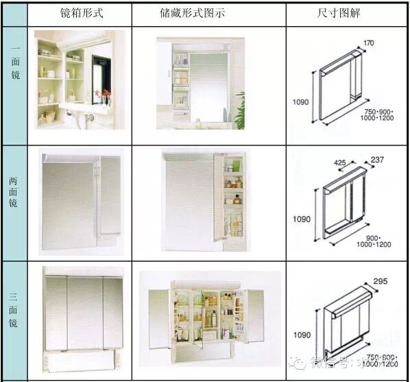 在中小户型的卫生间中,使用镜箱既可以起到使用方便、增大空间感的效果,又可以更加有效的增加储藏量。在卫生间内设置镜箱时应根据不同的卫生间面积来设计采用不同的镜箱形式,例如,当卫生间面宽较小时,就只能做一面镜形式的镜箱,当面宽稍大时就则可做两面镜形式的镜箱,当卫生间空间较充裕,面宽较大时则可做成三面镜的镜箱形式。