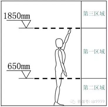 根据人体动作行为和使用舒适性及方便性,把柜体高度划分三个区域