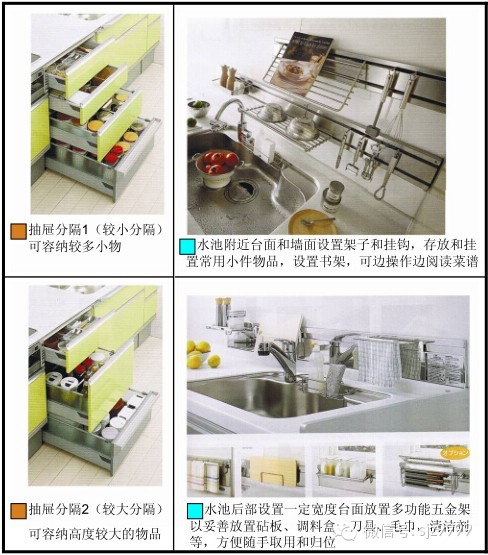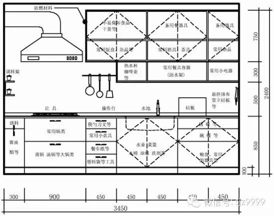 厨房储藏空间的各组成部分的尺寸应根据人体尺度、活动范围及相关的设备的尺寸要求来确定
