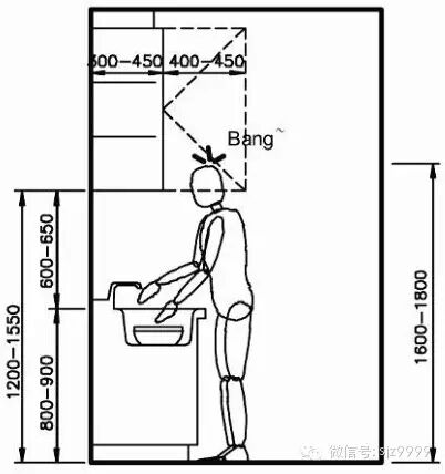 ①吊柜底面标高较小时易造成操作时的碰头和视线遮挡