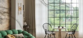 ...钢窗设计,链接自然与室内,略带复古质感,为空间增添一抹时光韵味。窗外便是绿意盎然的户外花园,用餐之间,自然风景徐徐展开,四季皆成画卷。此处,是味觉与情感的交汇之地,也是生活最温柔的片段。