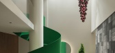 那抹浓郁的绿色螺旋楼梯如空间的艺...