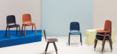 ...,留下了一张多功能的、全木的、堆叠的椅子,它的颜色五花八门。我喜欢木纹仍然是通过颜色呈现的。