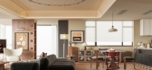 开放式的公区满足用餐、会客、休闲娱乐的需求,充分体现了都市生活的精神核心,大面积落...