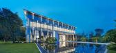 ...在一层增设的大斜顶,使其与原建筑关系更为紧密,通过体块的缩放和断裂,视觉冲击更强烈。户外屋顶拥有将近三米的挑空,作为餐饮空间的室外长廊,做到与自然环境更好的融合,也使主入口步行到室内拥有一个缓冲地带。...