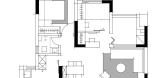 现代中式风格,右边的办公区不用调整,主要是优化一下客厅部分跟右边的餐厅。需要一个储物间。在线等。