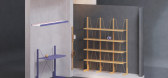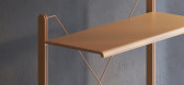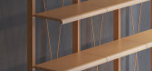 ...货架系统有一个黑色的钢结构,木制的架子和封闭的储存元件放在黄铜配件上。由于存储元件似乎在框架结构中盘旋,存储系统有一个轻盈的表达。该系统是灵活的,它可以混合和匹配开放式货架,抽屉元件或更大的存储元件,...