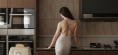 ...,在制作一杯现磨的咖啡,宅家享受慵懒的时光。内嵌的冰箱在节省空间的同时也保持了空间的整洁。