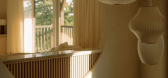 ,由于高高的天花板、稀疏的家具和宽大的定制窗户,内部空间明亮通风。 窗户俯瞰着绿色花园,...