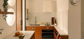...专为小公寓,并隐藏了一个水池和烹饪区域后面的一对钢折叠门。当不使用时,家具可以关闭,就像衣柜一样。