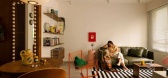 活动室兼作安静的书房,黑白灰基调中加入高饱和色调点缀
