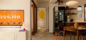 ...台面由客厅延伸至书房,又是业主办公看书的桌子,两边折叠门拉上就是私密空间。放上沙发床偶有人来可以临时住,日常又是休闲区域。床头背景墙呼应客厅颜色延续整体风格,纸质吊灯更是别有一番滋味。