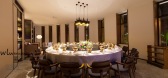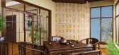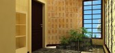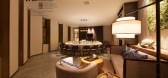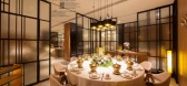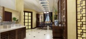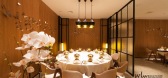 朦胧的城市天际线在巨大落地窗外氤氲成抽象背景画,脚下温润石砖诉说着古老与现代的对话。冷峻的金属线条悄然融入,与传统东方建筑神韵碰撞,激荡出充满未来感的静谧诗意。