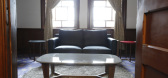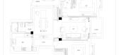空间释意:主卧的色彩依旧承袭黑灰色调,靠枕加入辅助色宝蓝色和棕黄色...