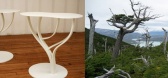 与光滑的黑色和白色可丽耐台面和腿捆交织的木条,捆边桌是截然不同的元素一起工作得很好。