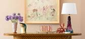 ...贝卡·加德纳在佐治亚州萨凡纳的家的入口墙壁被涂上了唐纳德·考夫曼(Donald Kaufman)的DKC 103颜色,并引入了加德纳的“脏粉彩”调色板。一张古色古香的控制台桌顶上放着一盏杰弗里·比尔胡伯灯(“我像鹰一样研究他的作品...