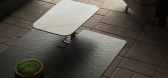 氛围营造: 地面采用了在爵士白仿大理石瓷砖嵌入了宝石蓝的元素,以叶片形的铺贴引人入内。
