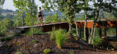 为了支撑大型绿色屋顶,选择了混合混凝土和钢结构。植被的存在创造了更宜人的微气候,减少了冷...