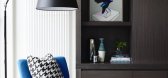 ...,这是奕凨之家的社交中心。赭色地砖,纹理石膏涂料,定制的橡木搁架系统以及精选的充满艺术感的饰物共同构建了这个房间。房间内的定制沙发,让客人在此能够拥有家外之家的舒适体验。