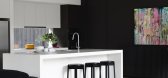 厨房和门厅入口墙被特色弧形玻璃隔断取代,以最大限度地扩大起居区的视觉范围。这些弧形玻璃的设计细节、圆角和墙板的木饰边都是与中峇鲁庄园标志性建...