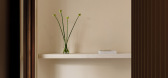 原本入户门对着客厅,利用屏风的概念量体分割创造一种穿透延伸却又有阻隔的空间感,丰富了玄关空间的层次,也能营造回到家心境转换的心理仪式感。