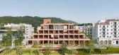 ...对称的结构之中,我们在首层和三层设计了两个挑高的半室外庭院,打破了立面复的韵律,形成空间的小变奏。同时引入阳光和绿植,让自然景观始终贯穿在建筑之间。位于首层中心的架空中庭,一侧正对河岸上的观景平台,另...