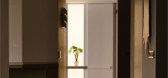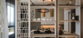 ...牆面面向陽光,透過細膩的格柵間隙,陽光與門扇、胡桃實木產生時間軌跡的光線變化。走道盡頭的透光浴室將陽光迎向垂直的立面線條,光線堆疊導入室內,細節裝飾即透過自然的形式表現。