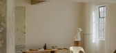 光由平面流淌到曲面,影子也在墙上、地上缓慢移动时,却产生一种缠绵的诗意。细窄的切口处光线射下时,集结成束的“追光”则重新塑造了空间形态。