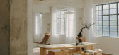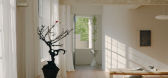 ...随着回荡的旋律自然舞动,脚步轻巧地在深棕色木地板上移动,穿梭在型态各异的家具、摆饰和艺术品之间。当微风轻轻吹拂,扬起的纱帘亦在窗边偏偏起舞;随着日光恣意游走,室内光线依循时间变化,时而透过窗映照於地面...
