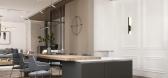 ,此案屋主喜欢住在饭店的氛围,希望家里能有饭店的风格,於是我们将厨房位移到外面变成开放式厨房,主卧室使用拉门,跟客厅有穿透感;整个空间塑造一个回字型动线,这样的回字型空间,除了会让空间延伸,光线或对...