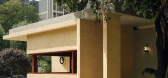 ...能将其拆除,进行重建,但是建造范围被约束在原岗亭6平米范围内,高度也有限制。不过,令人惊喜的是,岗亭一侧,与之相对,有一片地势略高、栽种树木的开阔草地,同属可改造范围。于是,设计的核心任务聚焦在两点:...