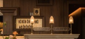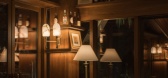 吧台区域以多重肌理石材拼贴台面回应传统工艺,嵌入式暖光与复古吊灯叠加出柔和光晕。