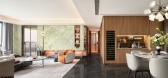 由入户花园进入客餐厅,便可见十分开阔的客餐厅及开放式厨房,两厢融汇贯通,天花区分空间。空间以黑白色为...